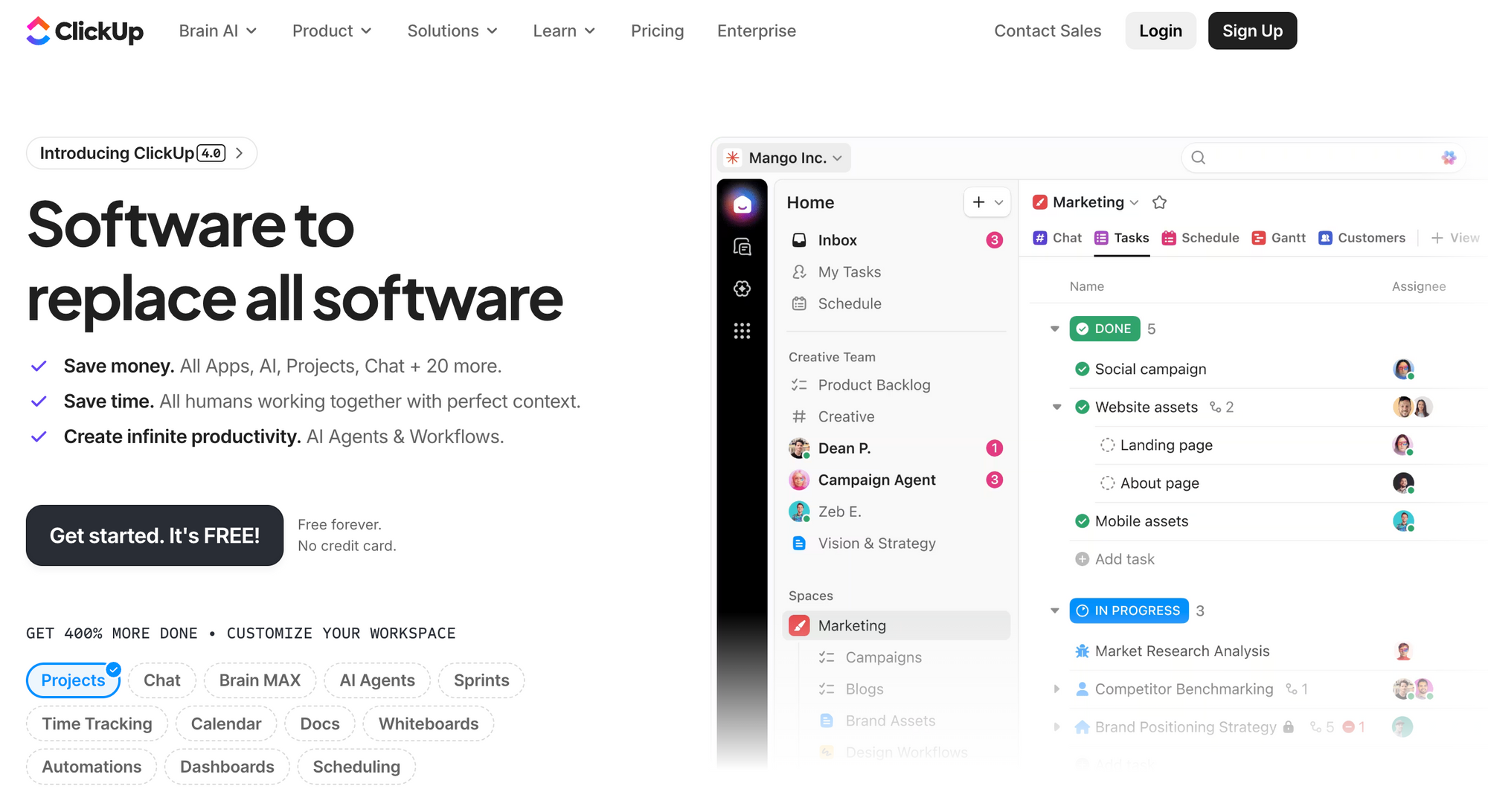 | ClickUp | Project management software | Managing projects,tasks and team collaboration | From free to $12 per seat/month (billed annually) |