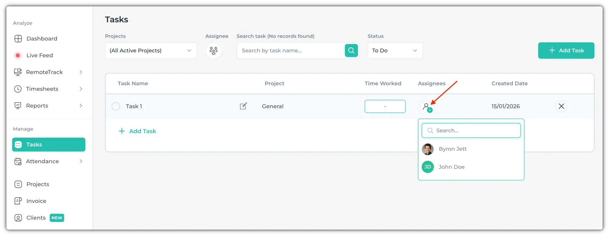 ๐ You can assign employees from the Add People & Permissions section in Project. Click on the (+) button to add employees.