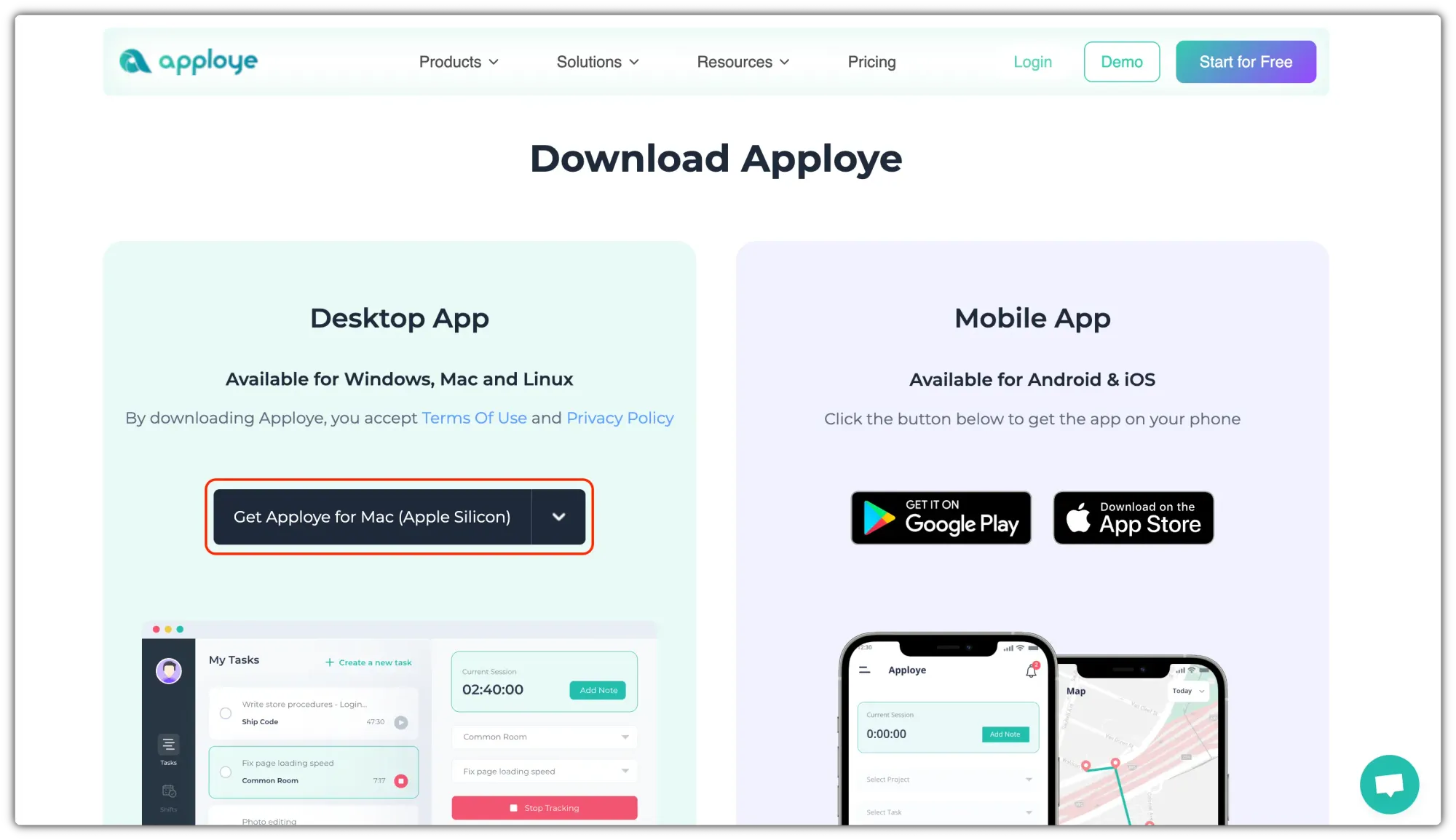 Your operating system will be automatically detected. Just click on the โGet Apploye for (OS)โ button to begin downloading. Then, you can install the application.