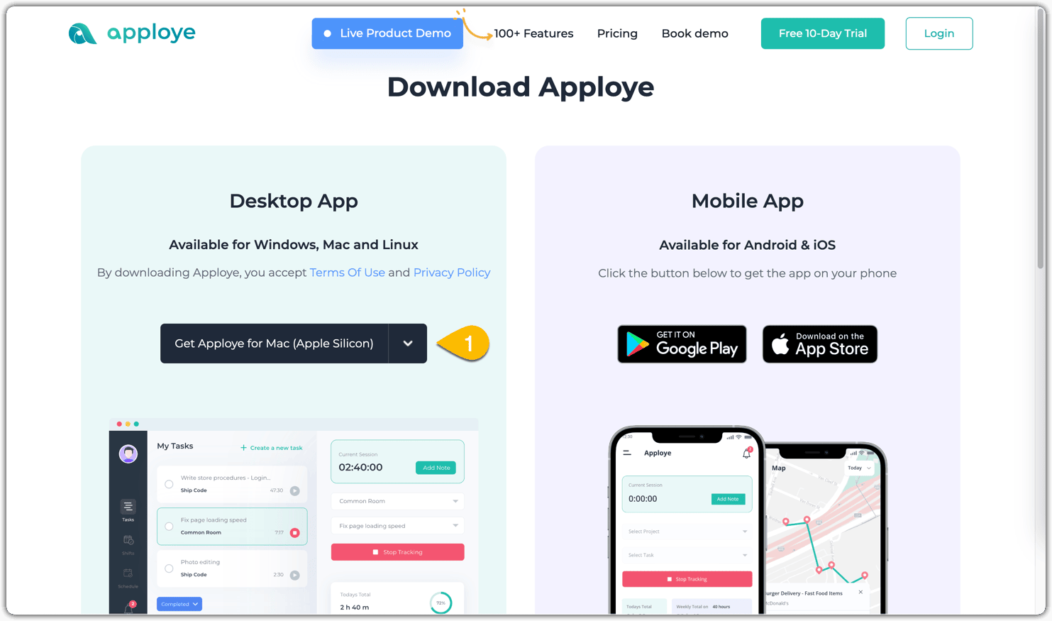 Your operating system will be automatically detected. Just click on the โGet Apploye for (OS)โ button to begin downloading. Then, you can install the application.
