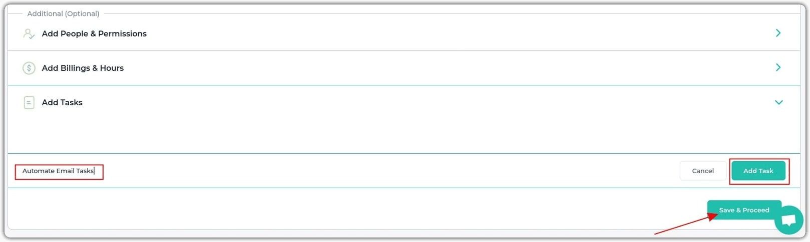 ๐ You can choose to add a task from the Project section. Remember to click on Save & Proceed. However, we'll show you another way in step 6.