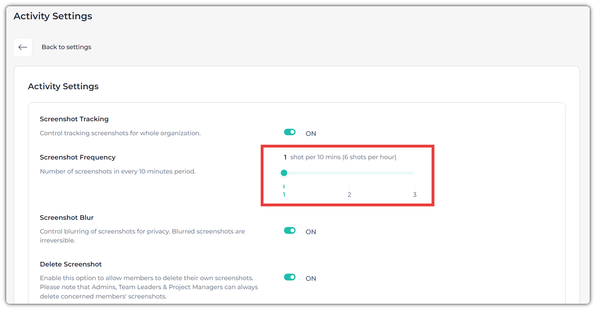 - Screenshot Frequency: Change the number of screenshots taken every 10 minutes.