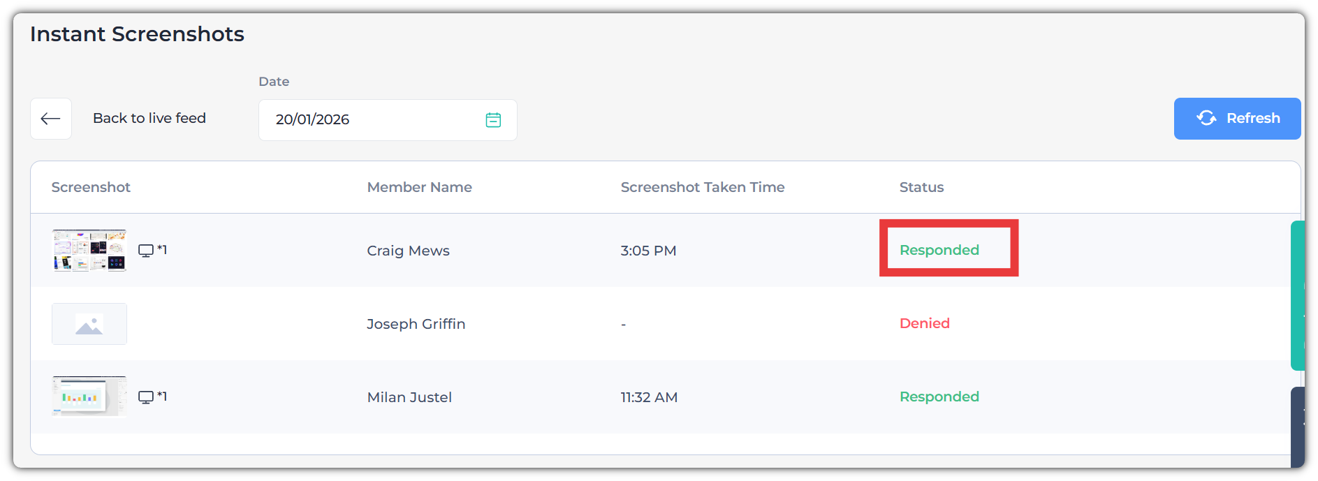 After clicking on Take Screenshot, you'll have to click on Refresh. When the screenshot has been successfully taken, the status will be changed to Responded 📸