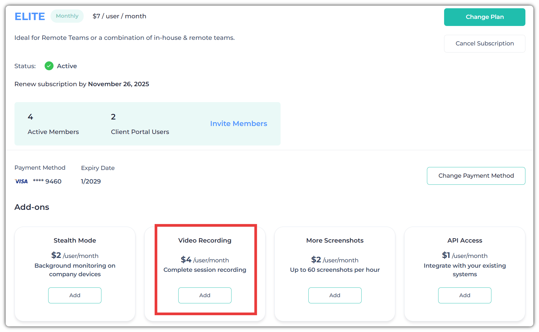 The feature is available as a paid add-on. Once enabled for your organization, Apploye will start capturing 3-minute screen videos at regular intervals while the desktop app is tracking time.