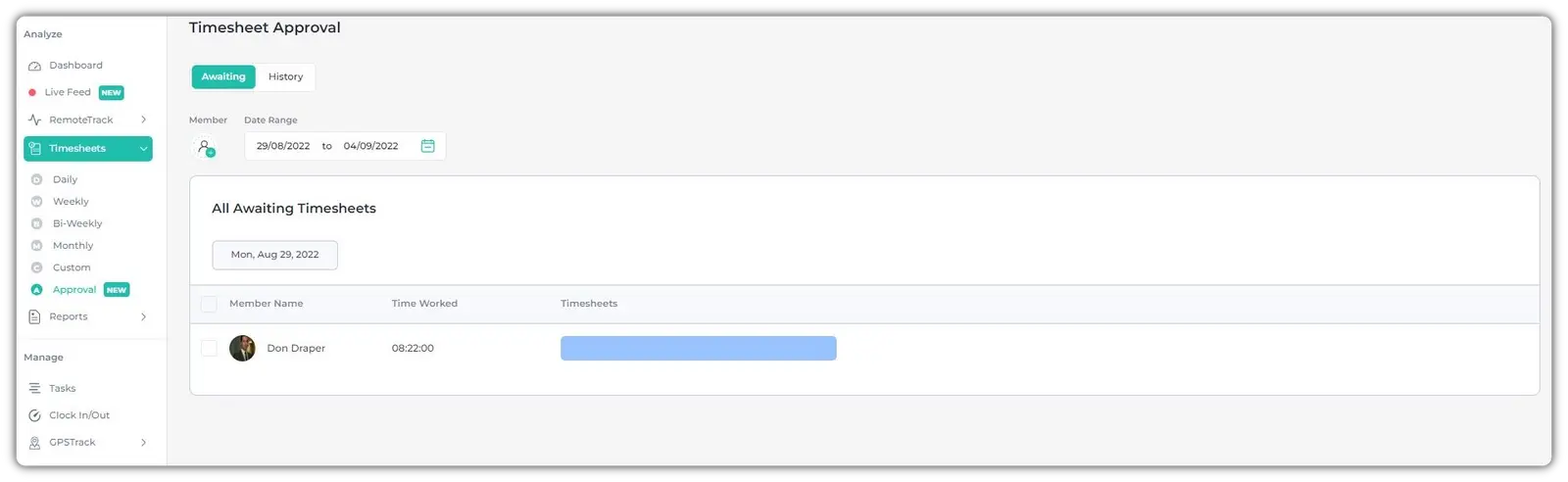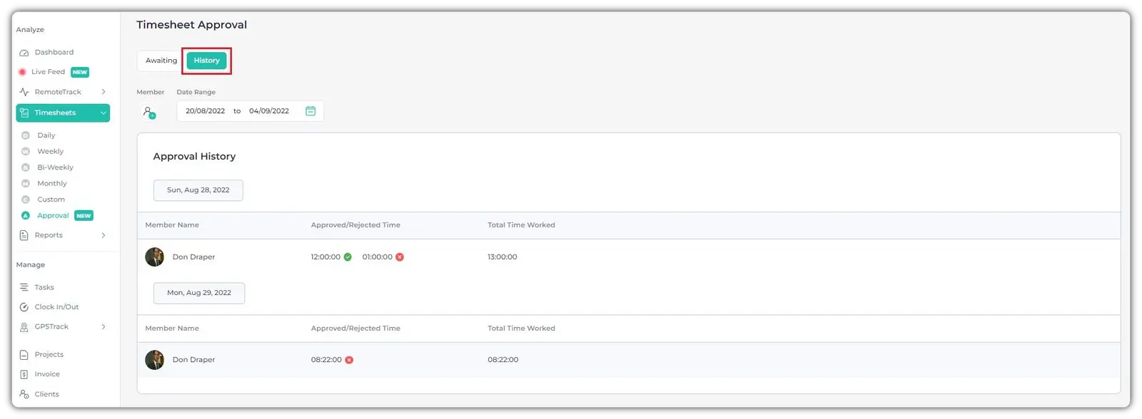 š You can Approve/Reject timesheets from Timesheets>Approval.