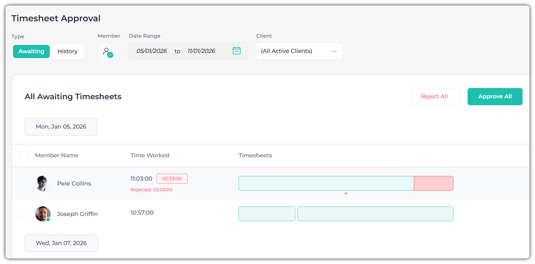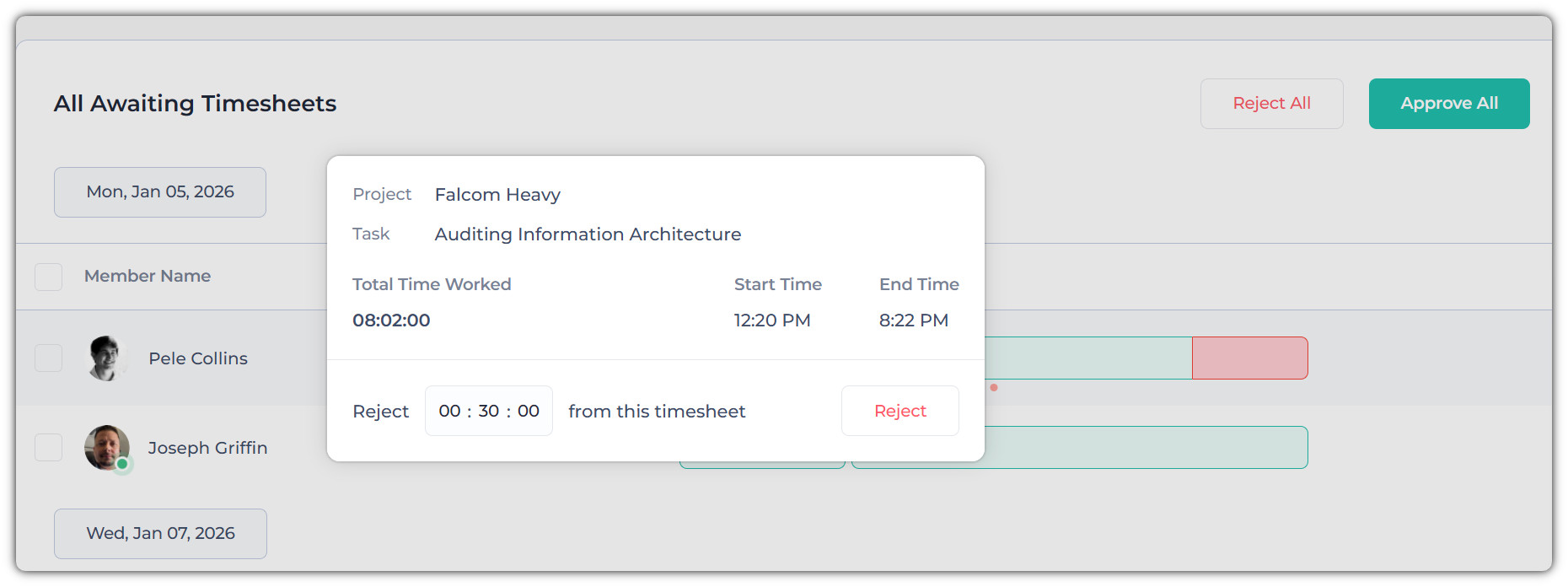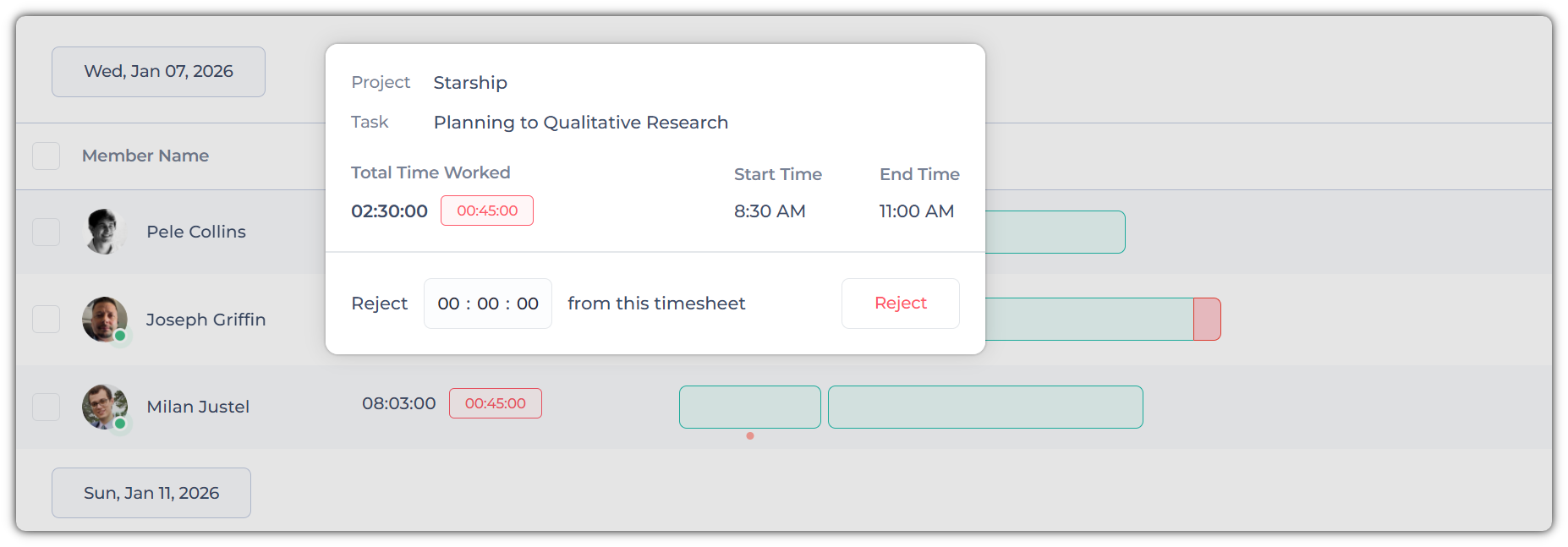 👉 You can Approve/Reject timesheets from Timesheets>Approval.