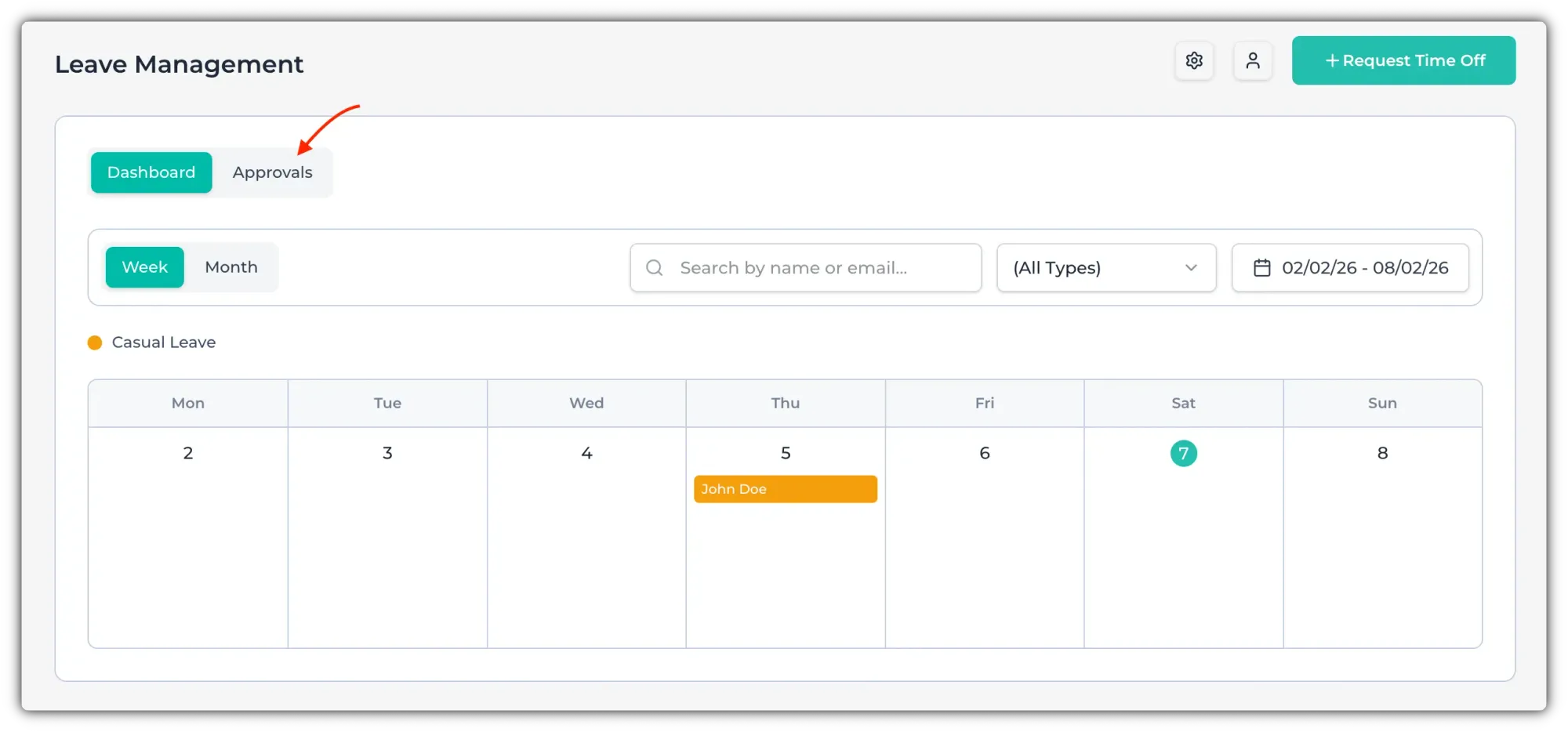 If any employee has requested leave, you will see a number in the "Approvals" section.