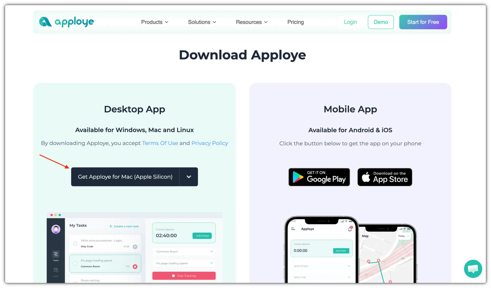 Download the Debian or Appimage file from https://apploye.com/download. It should show the correct version for your Operating System.