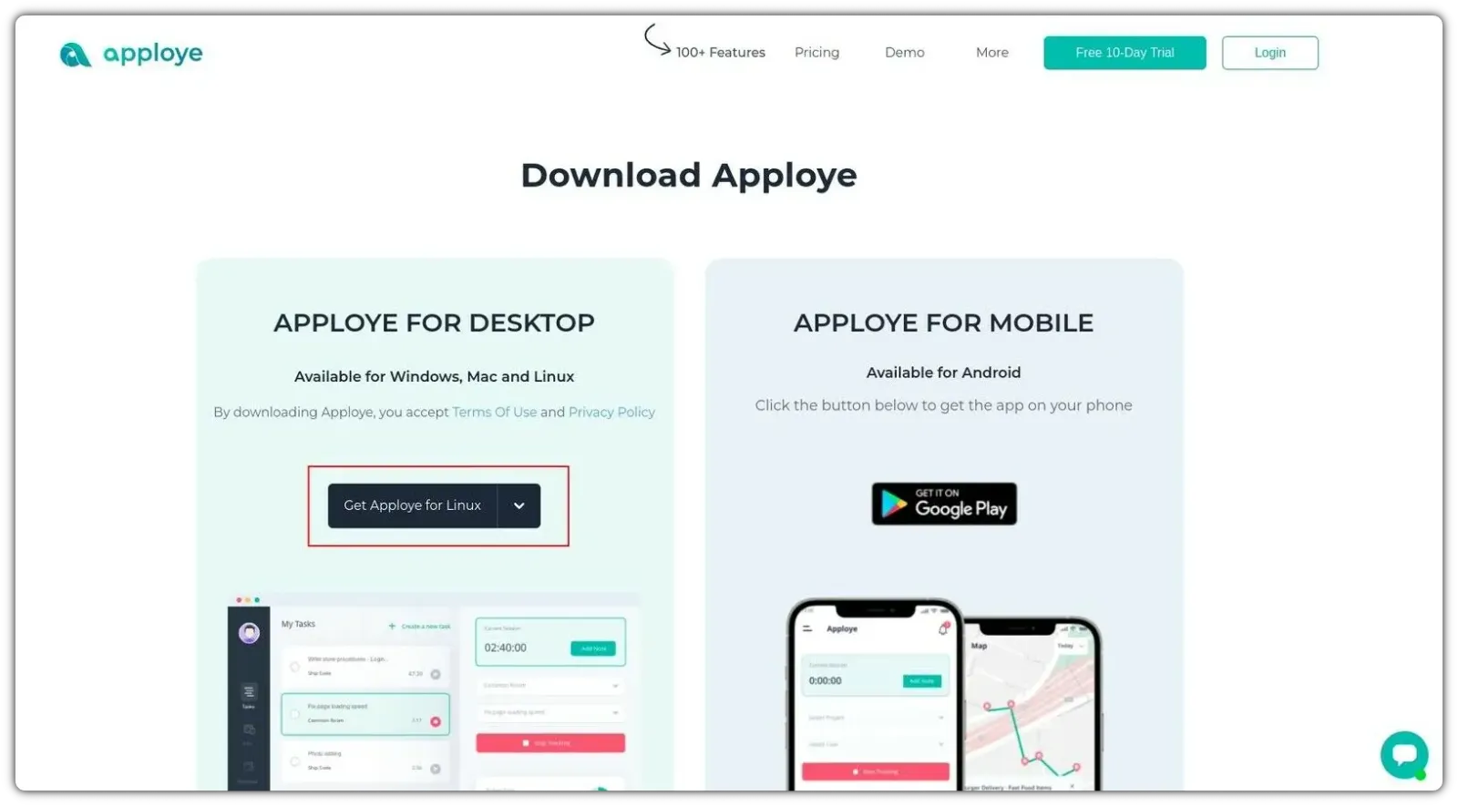 Go to the Download page from the Apploye website to download the app. By default, your current operating system will be selected. If you want, you can choose the proper version and download that.