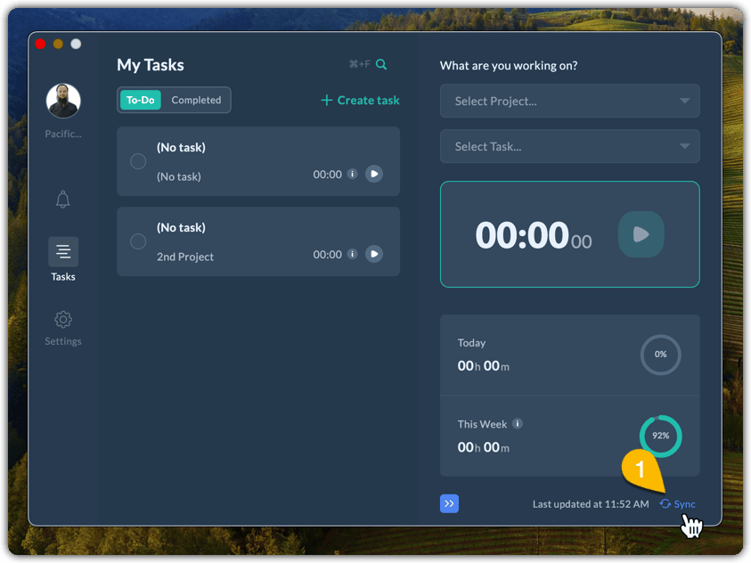 If you forget to start the timer. Go to Settings and turn on "Launch at startup". Now, the app will launch when you start the computer. Then, all you need to do is click on the Start button to start tracking.