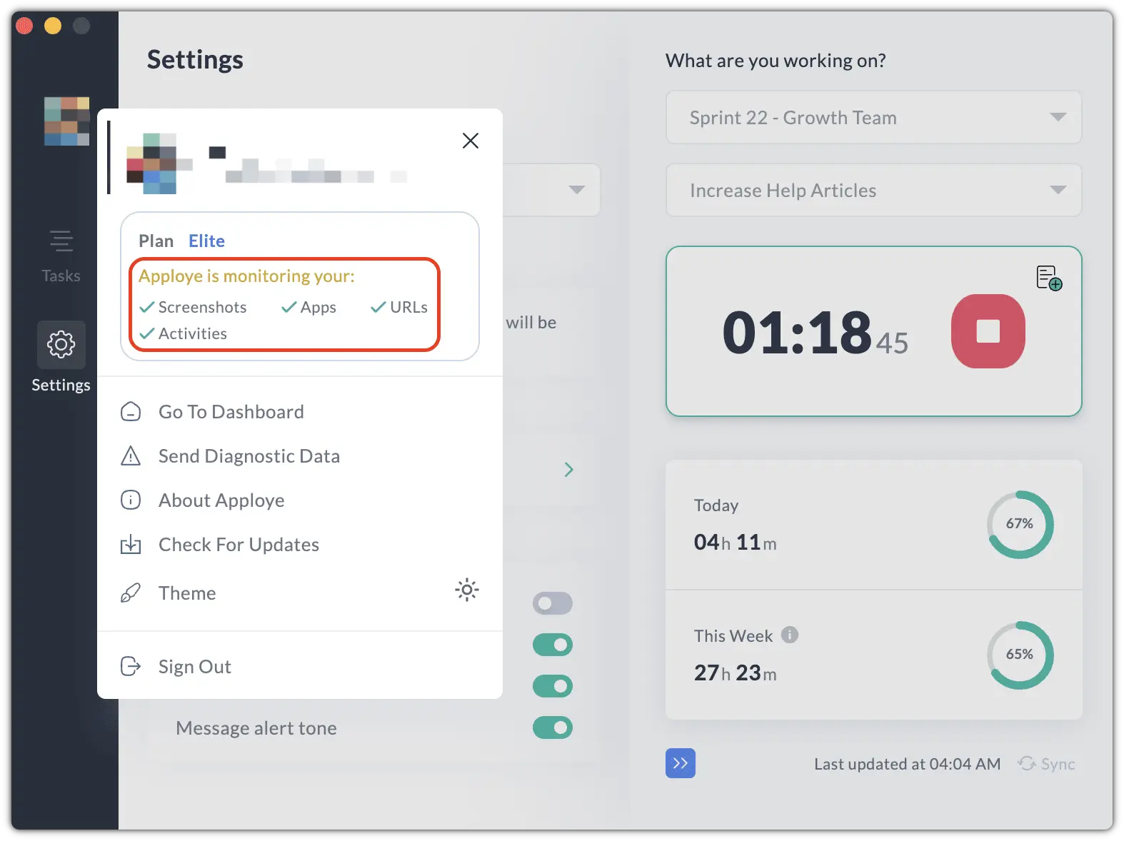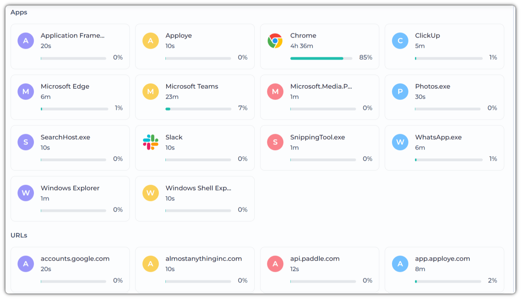 Depending on your plan and selected add-ons, the data tracked by Apploye may vary. Apploye monitors work activity to help teams measure productivity and gain insights into how time is utilized during work hours.