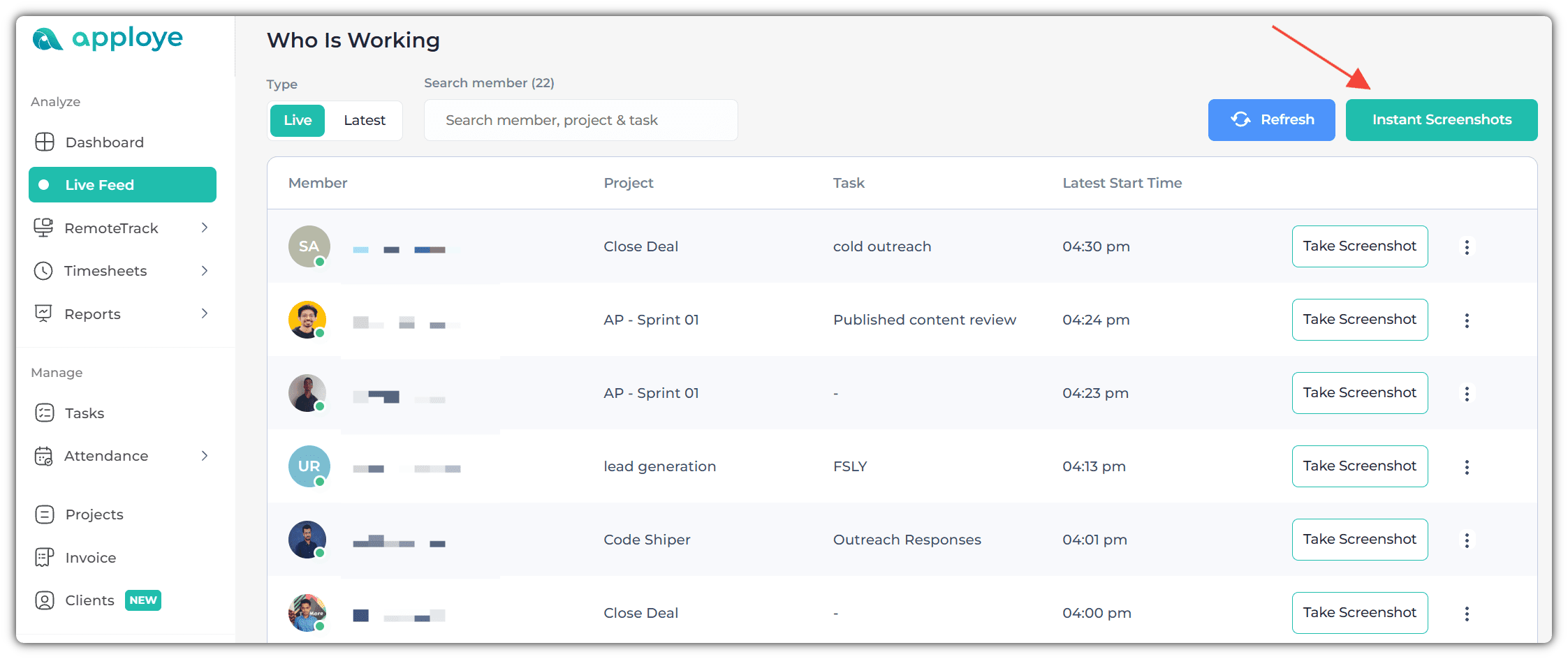 How can I take Instant Screenshots Go to "Live Feed" from the left side panel. Click Apploye Inc Jan 20, 2026 1 min read